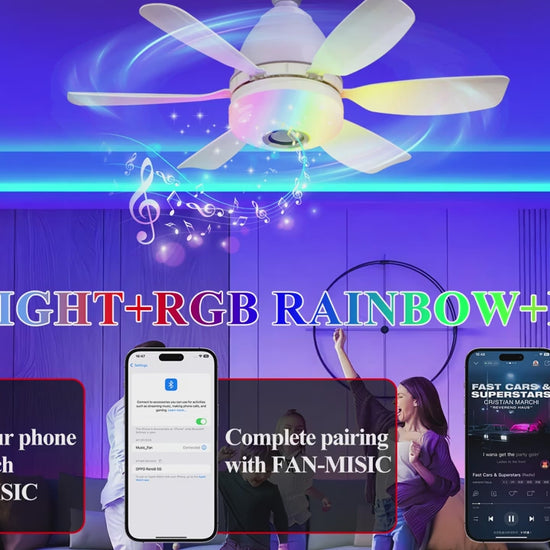 Featuring RGB rainbow colour-changing LED lighting, this ceiling fan allows you to set the perfect mood for any occasion — from calm and cosy evenings to lively parties. The dimmable light range (3000K–6500K) lets you switch between warm, natural, and cool tones with ease, while the built-in Bluetooth music speaker fills your room with clear, immersive sound.